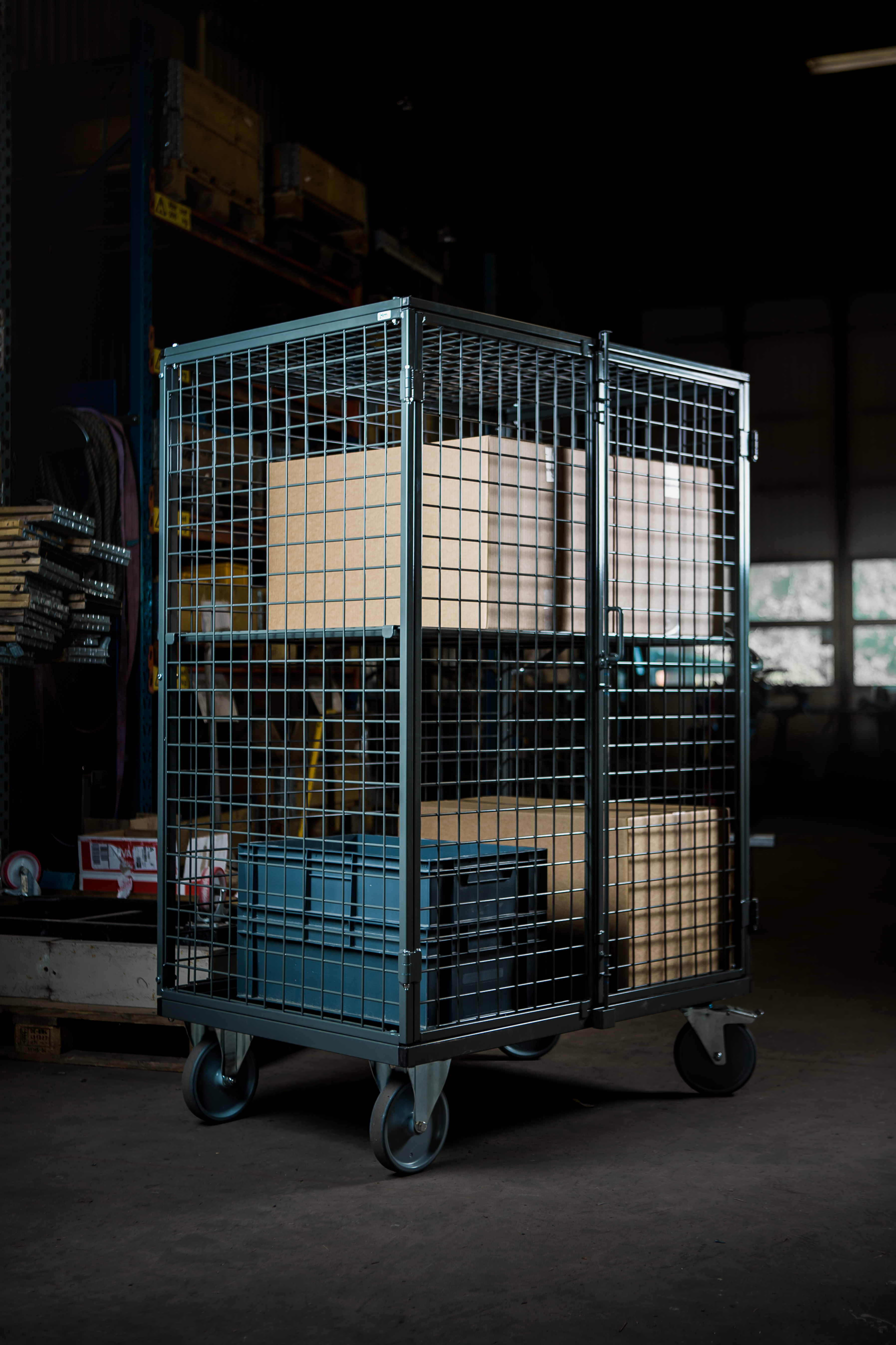 Prateleiras não incluídas. Dimensões interiores: 1160 x 760 x 1440 mm. Altura até à primeira prateleira: 290 mm. Capacidade da prateleira: 100 kg. Rodas: 2 fixos 2 giratórios com travão. Diâmetro dos rodízios: 200 mm.